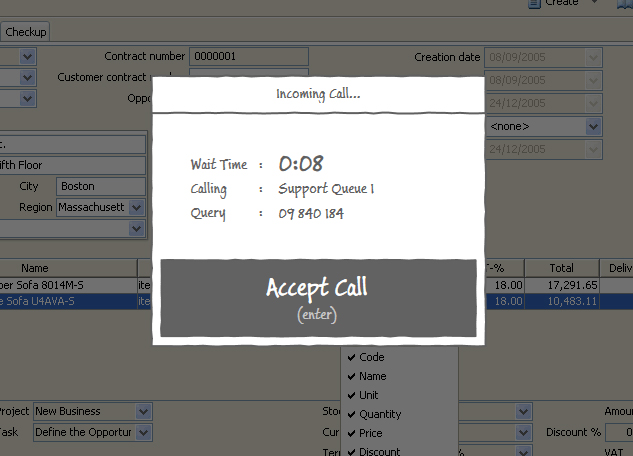 On presentation of a call offering the agent is delivered a pop up notification showing the callers number and name (if that caller is in the phonebook), and importantly, how long the call has been in the queue - the wait time.