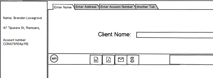it became obvious that a small footprint for the application was desirable in order to fit on screen with a CRM, browser window etc. Also that timely and pertinent information needed to be presented to a busy agent obviously but unobtrusively.