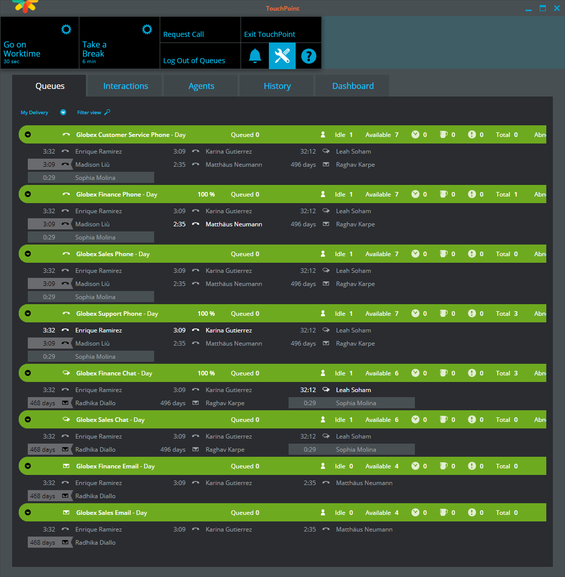 Web based Agent, Supervisor and Administrator applications have been developed. Shown here are some of the screens I have designed and had a hand in coding.