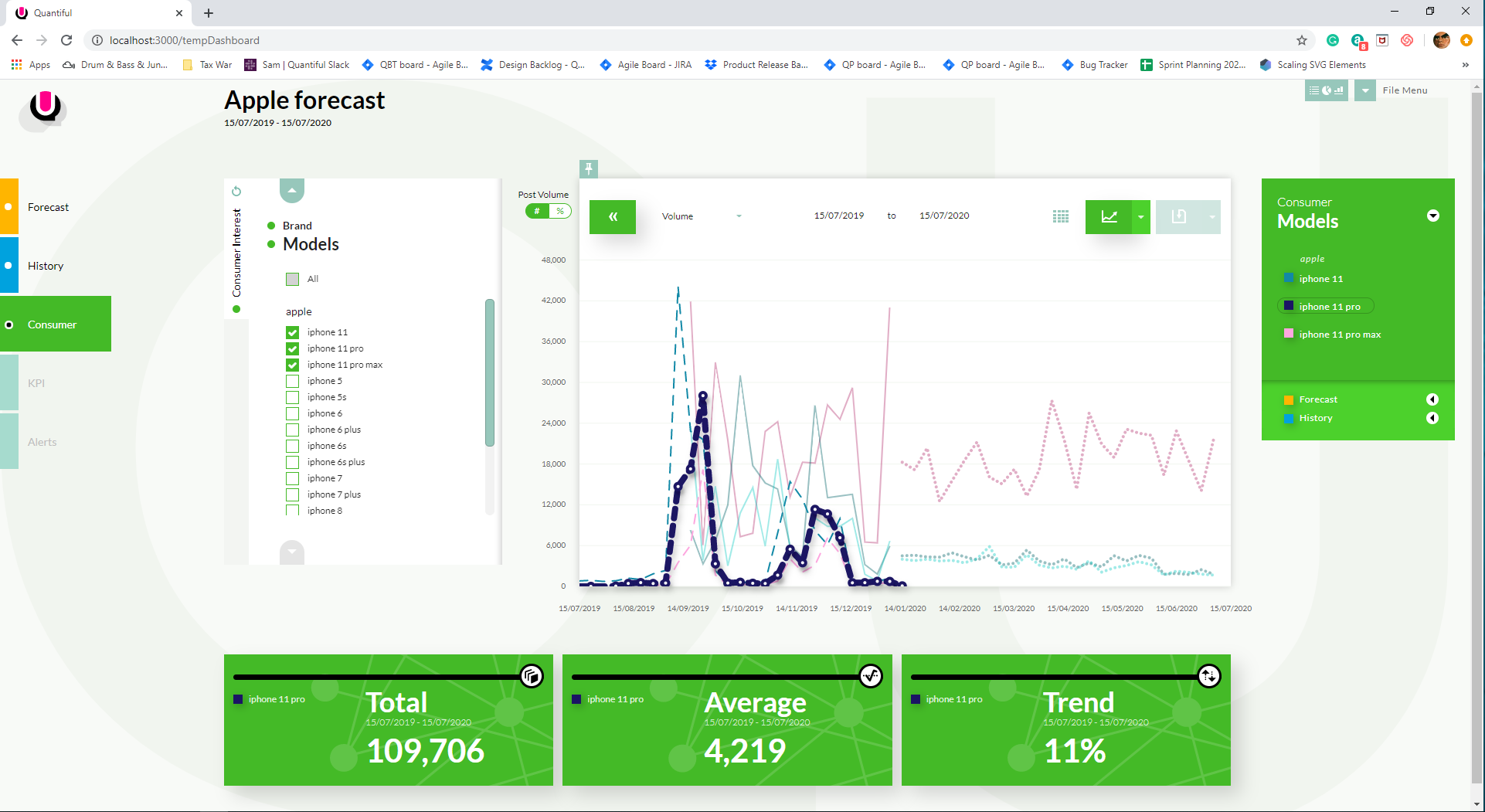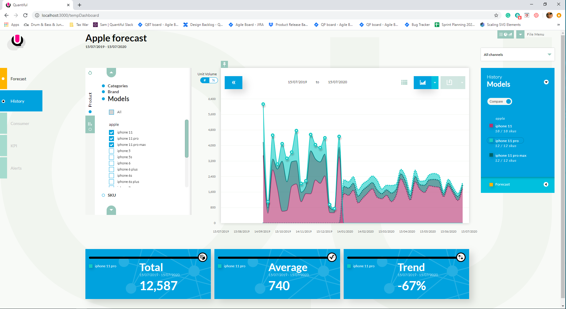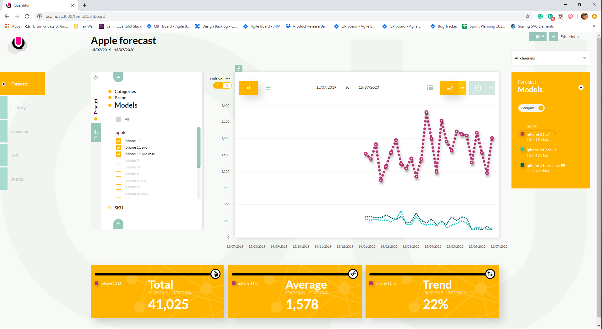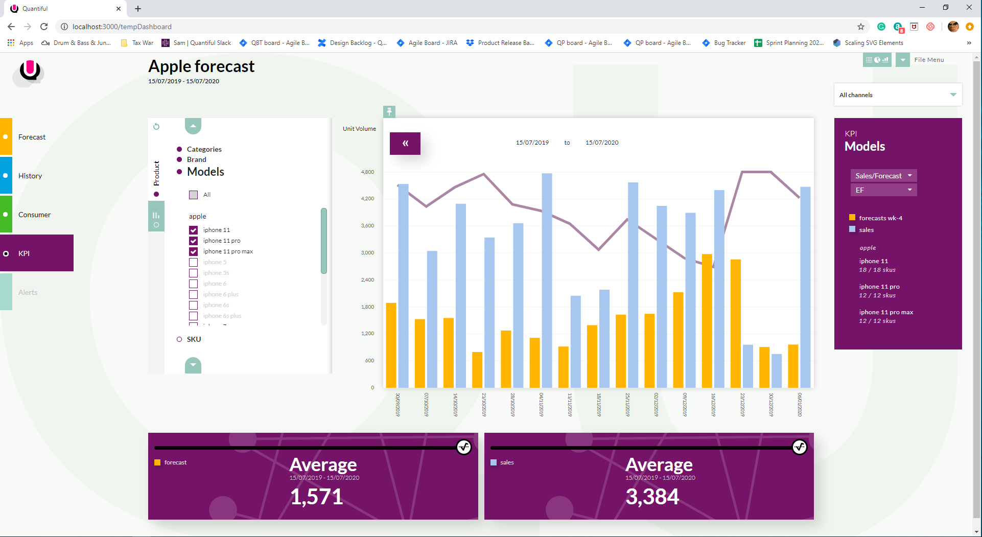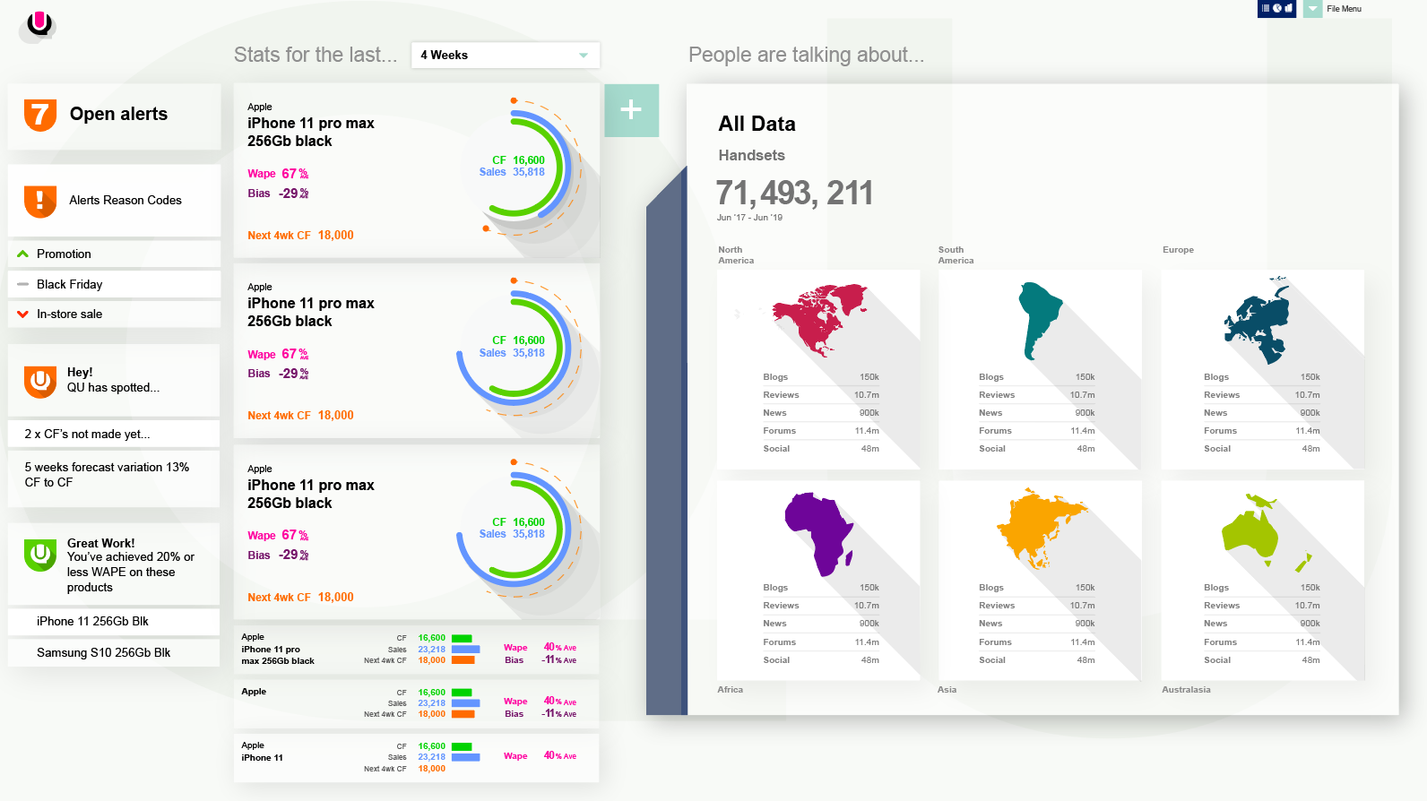 As well as being able to quickly see Customer social activity and any corresponding buying patterns, the ability to cross reference and check forecasts, sales histories, and their own KPI's was needed to inspire trust in Quantiful's brilliant Algorithms